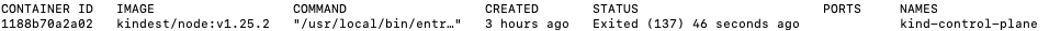 If you see Status as Exited, your current kind container is not running and you can start it with the following command.