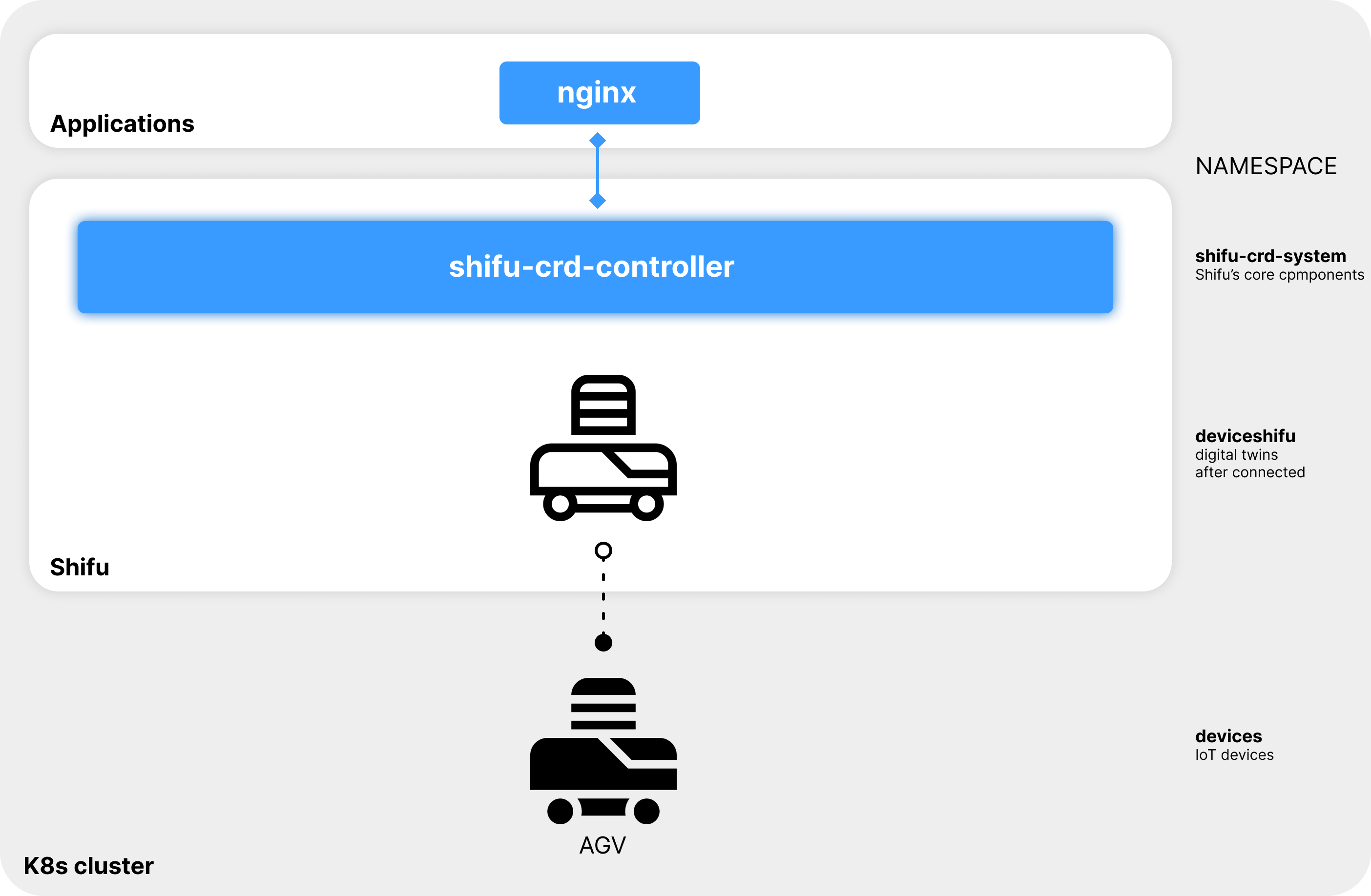 You have just installed Shifu through the Shifu installer, so the digital twin of the AGV, deviceShifu, has been created automatically. You can interact with the digital twin of the AGV directly without having to manually create it.